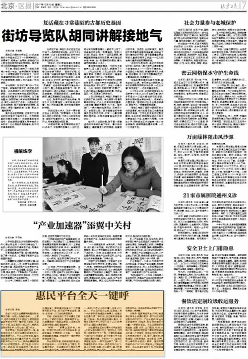 | 亦庄镇的社区服务中心自建成开放以来,在为居民们提供“高质、高效、便捷”服务的同时,也吸引了广大媒体的关注,近日,《北京日报》区县版和北京电视台《北京新闻》、《特别关注》、《北京您早》、《都市晚高峰》多个栏目,同时对亦庄镇社区服务中心进行了报道。