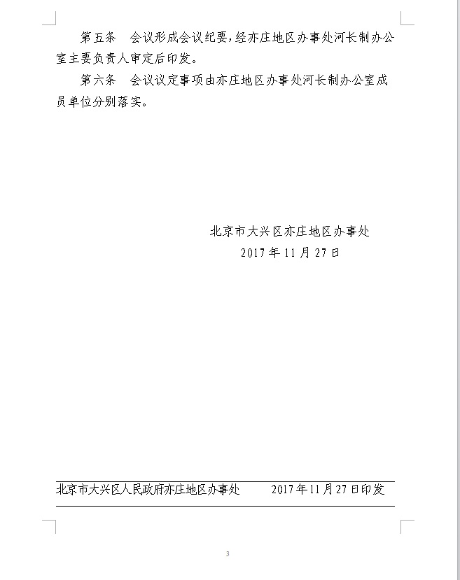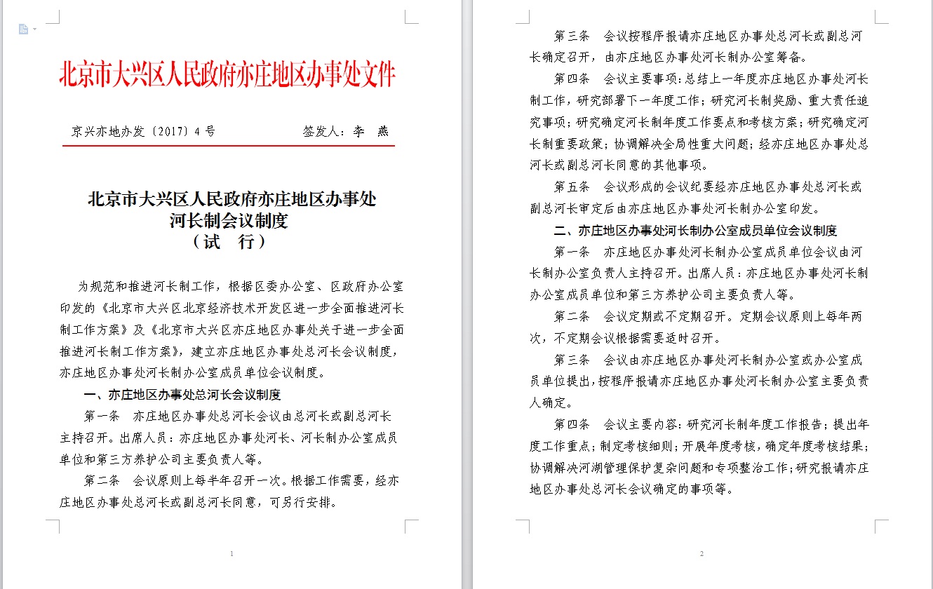 京兴亦地办发[2017]4号河长制会议制度